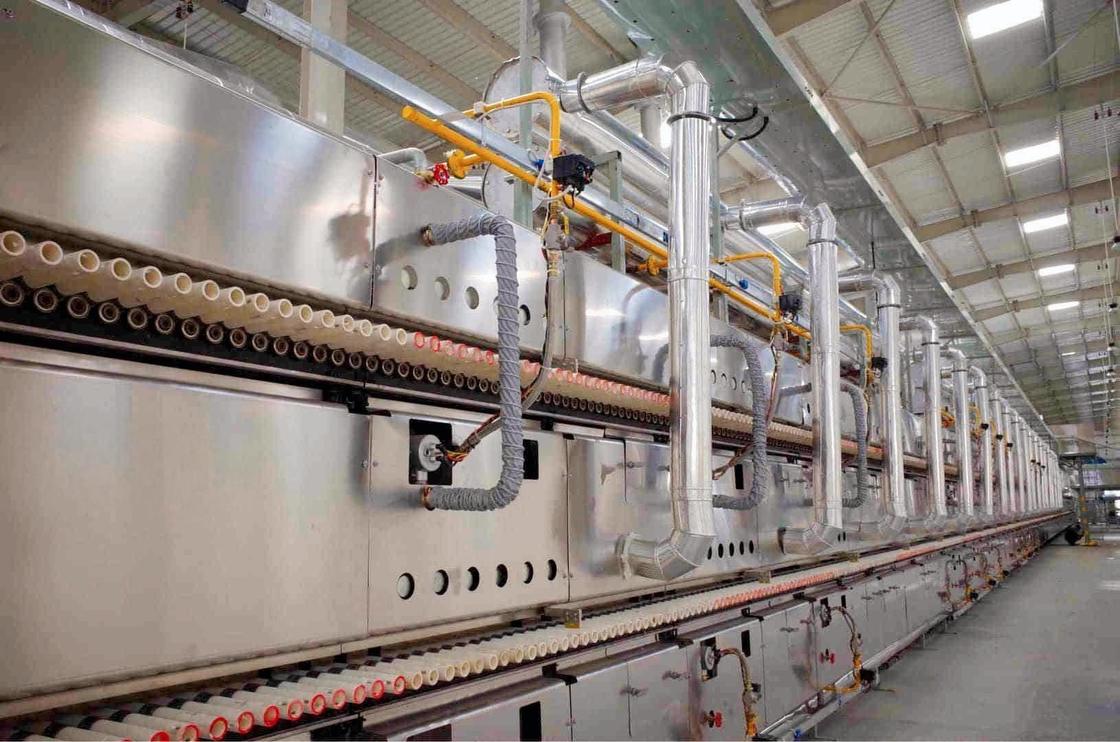 Efficacité thermique avancée et économie d'énergieNotre four à rouleaux intègre une couche multicouche de haute qualitérevêtement en fibres réfractaireset un système sophistiquésystème de récupération de chaleurEn captant la chaleur d'échappement et en la redirigeant vers la zone de préchauffage ou les séchoirs, la consommation de carburant est réduite jusqu'à25%Les brûleurs à gaz ou les éléments de chauffage électriques de précision sont gérés par un système PID intelligent.assurer une combustion optimale et des émissions minimales de carbone pour une fabrication respectueuse de l'environnement.